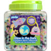 The Glow in the Dark Bead Jar includes 11.000 beads. providing endless fun for designs that come to life in the dark! Glow in the dark bead colors included: green. blue. pink. orange. purple. and black. For ages 6 and up.