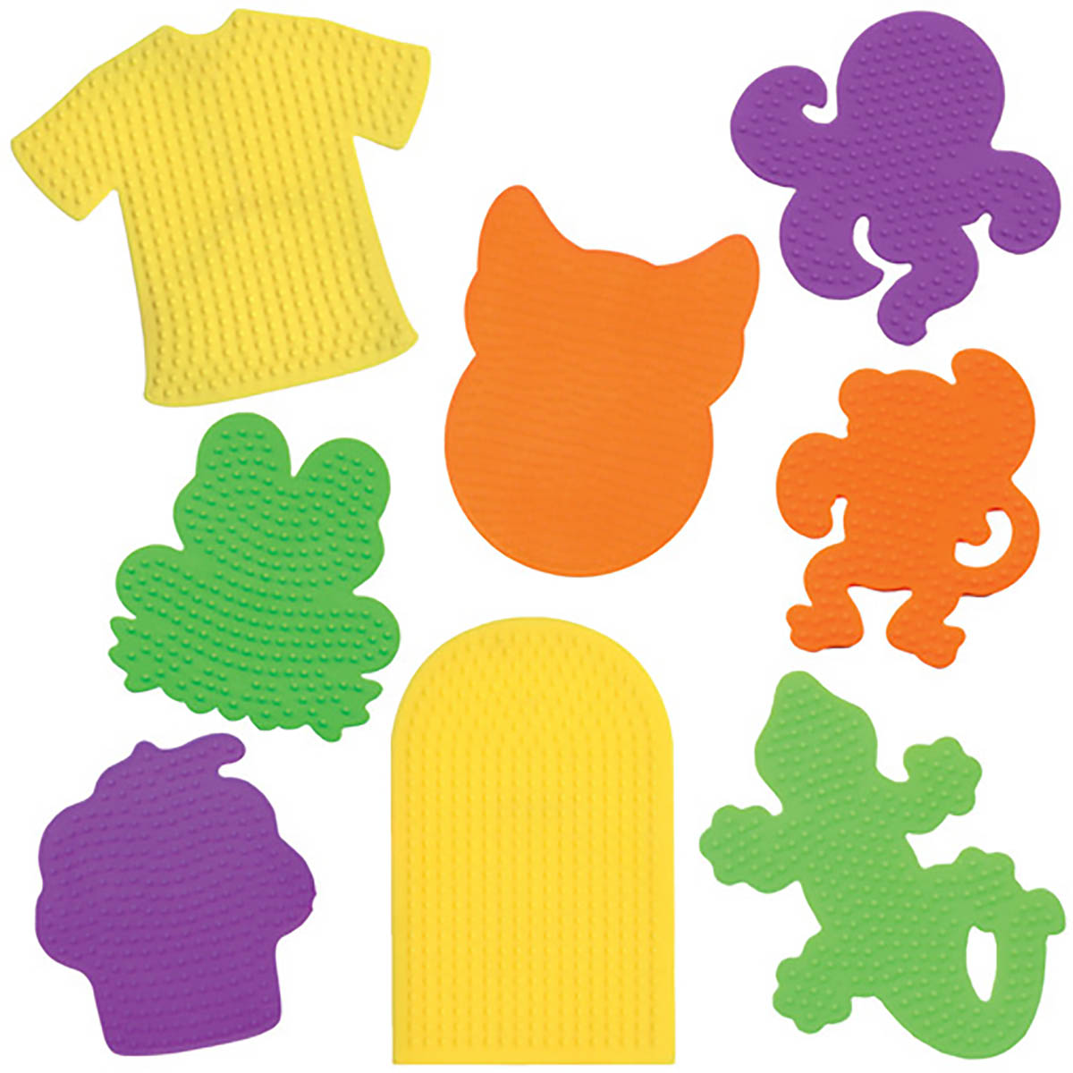 The Perler Pegboard Value Pack includes a great variety of pegboards in assorted colors that are designed for use with Perler Beads. Perfect for a rainy day or a birthday party activity! For ages 6 and up. The Perler Pegboard Value Pack includes these shapes—monkey: 3.5 x 4.1. octopus: 4.5 x 4.2. T-shirt: 5.5 x 5. owl: 3.75 x 4.875. frog: 3.75 x 4. cupcake: 3.75 x 4. arch: 3.63 x 5.88. and gecko: 5.6 x 4—plus ironing paper and easy instructions.