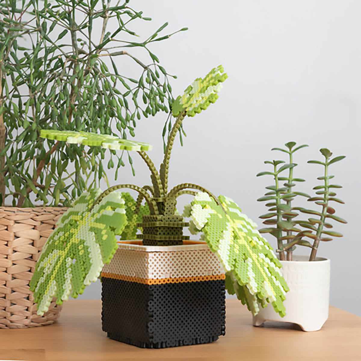 Adults like to embrace creative play too! Create a flourishing Monstera plant and container using Perler fuse beads. Perfect for any black thumb. this plant requires no watering! Finished design size is 9 wide x 8 high. The assembly manual includes detailed step-by-step diagrams to guide you in constructing the design. Bead colors are presorted in separate bags. so you can dive right in to making the patterns! Kit contains 8000 presorted beads. 2 pegboards. tweezers. ironing paper. 2 pattern sheets with ironing instructions. and assembly manual. Pegboards and ironing paper are reusable. Designed for ages 14 and up.
