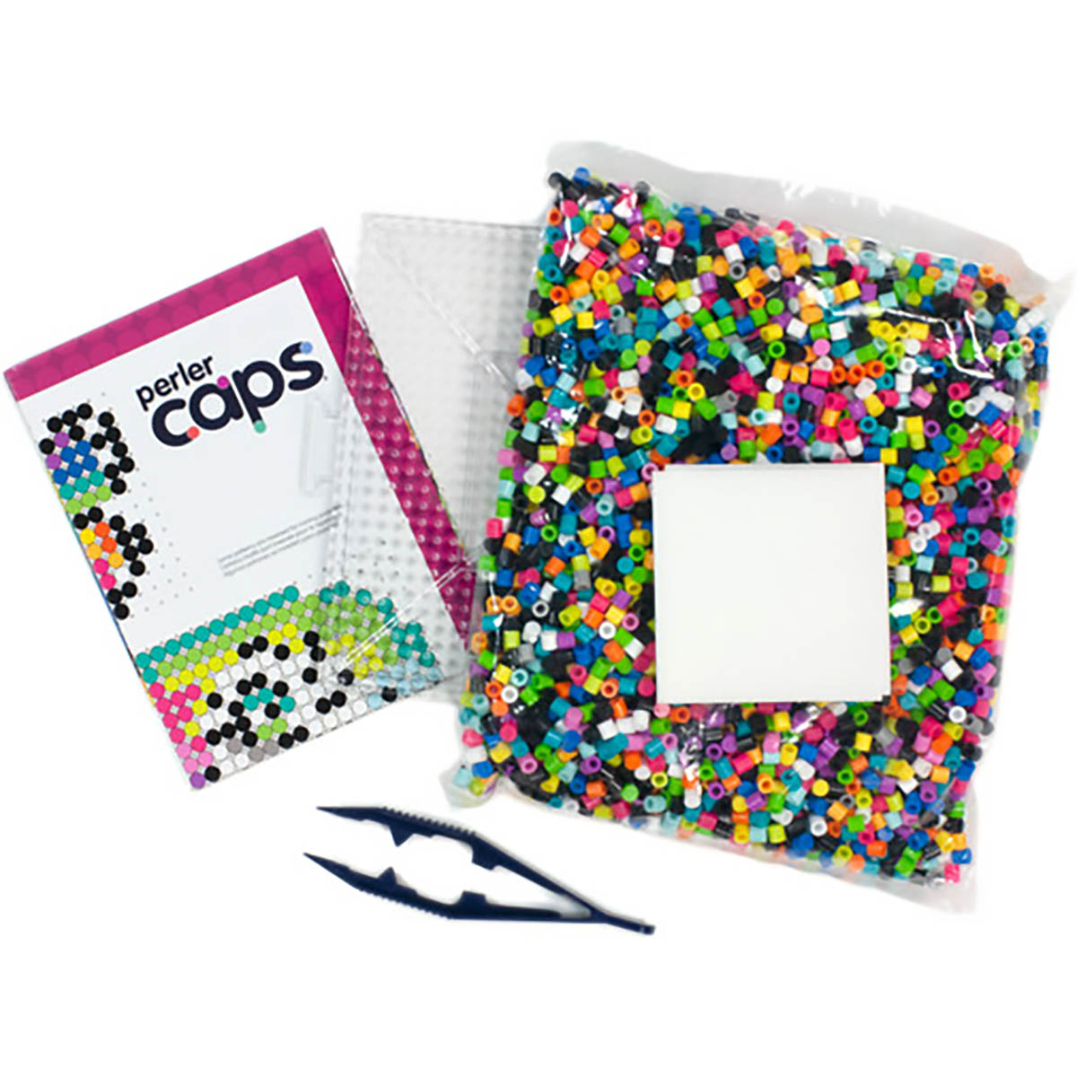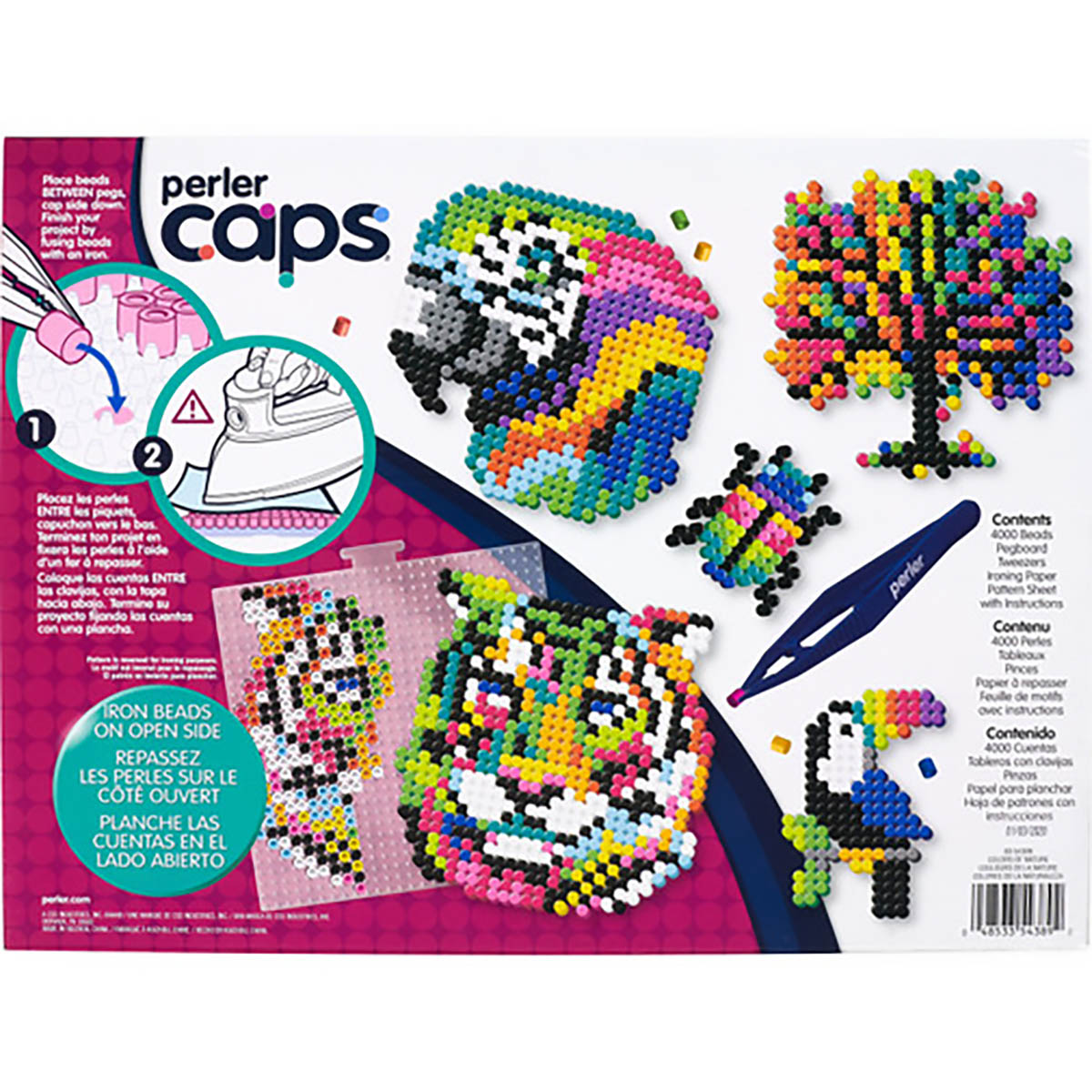 Everything you need is included to create these colorful nature designs with solid-top fuse beads. A fun alternative to classic Perler beads. Perler caps create a unique finished look. Includes 4000 cap (solid-top) beads. pegboard. tweezers. pattern sheet with instructions. and ironing paper.