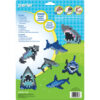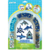 The Perler Sharks Activity Kit lets you create sharks. sharks. and more sharks! Kit includes patterns for 9 projects and is perfect for summer playdates or for gifting. Designed for ages 6 and up. The Perler Sharks fused bead kit includes 2000 beads. 3 pegboards—small square. fishy and 5-pointed star—plus ironing paper and a pattern sheet with easy instructions. Bead colors include light pink. bubblegum. toothpaste. pastel blue. dark blue. blueberry crème. gray. dark gray. black. and white.