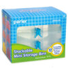 The Perler Stackable Mini Storage Bins are great for storing your beads and for taking them on the go! Set includes 12 connecting containers: each stack of 3 snap together and have 1 snap-lock lid. Bins measure 2.25 x 3.5 x 1 .75 deep and hold approximately 1000 beads. For ages 6 and up. Beads not included.