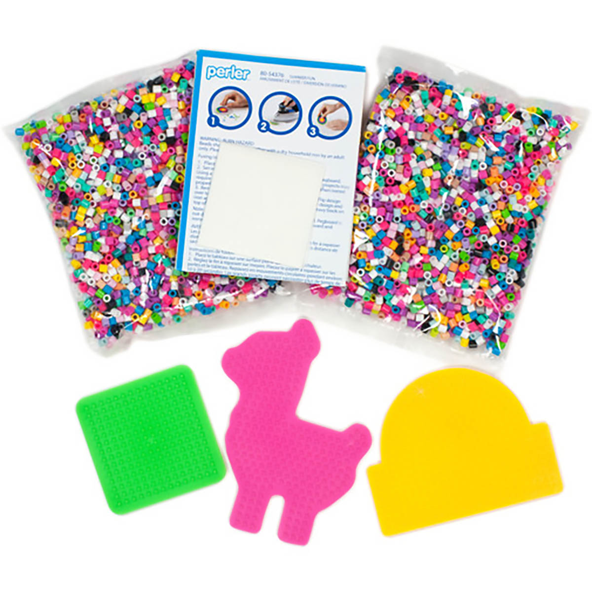 Create 18 different projects with the Summer Fun activity kit from Perler. Bright. cheerful shades of beads are used to make animals. rainbows. food. and more. Includes 4000 fuse beads. 3 pegboards. pattern sheet with instructions. and ironing paper.
