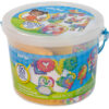 This bucket from Perler contains all you need to make some cool tie-dye designs. It contains 5000 beads in 16 colors. 2 small interlocking pegboards. pattern sheet. and ironing paper.