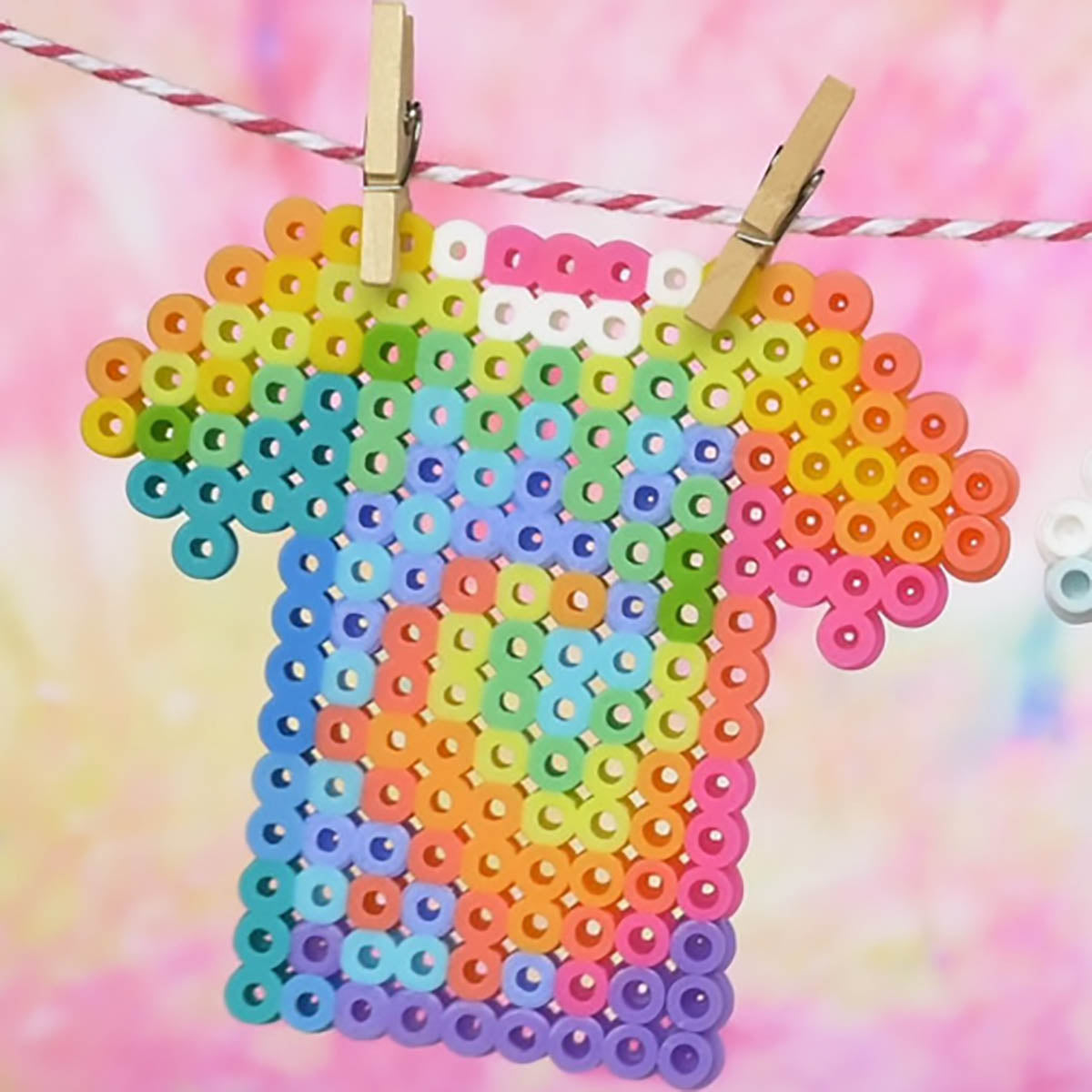This bucket from Perler contains all you need to make some cool tie-dye designs. It contains 5000 beads in 16 colors. 2 small interlocking pegboards. pattern sheet. and ironing paper.
