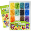 What a value! This convenient and stackable tray includes 4.000 Perler beads in 16 colors. plus an Idea Book with over 400 designs that can be made with Perler pegboards. Keep your colors sorted for easy selection of the colors you want for your design! Ironing paper not included. For ages 6 and up. Bead colors included in the tray: pink. magenta. red. cheddar. neon orange. yellow. light green. kiwi lime. parrot green. light blue. neon blue. plum. purple glitter. light brown. black. and white.