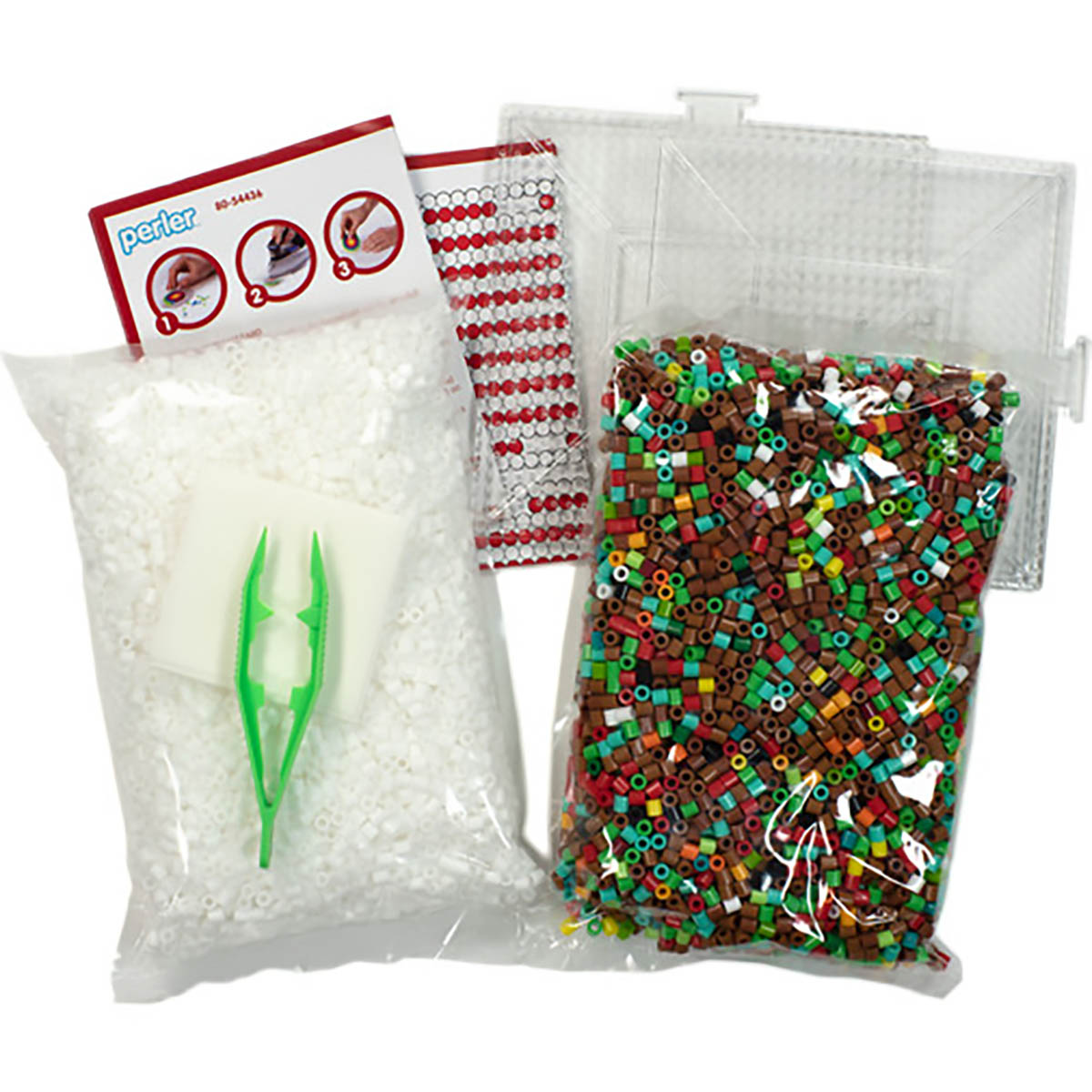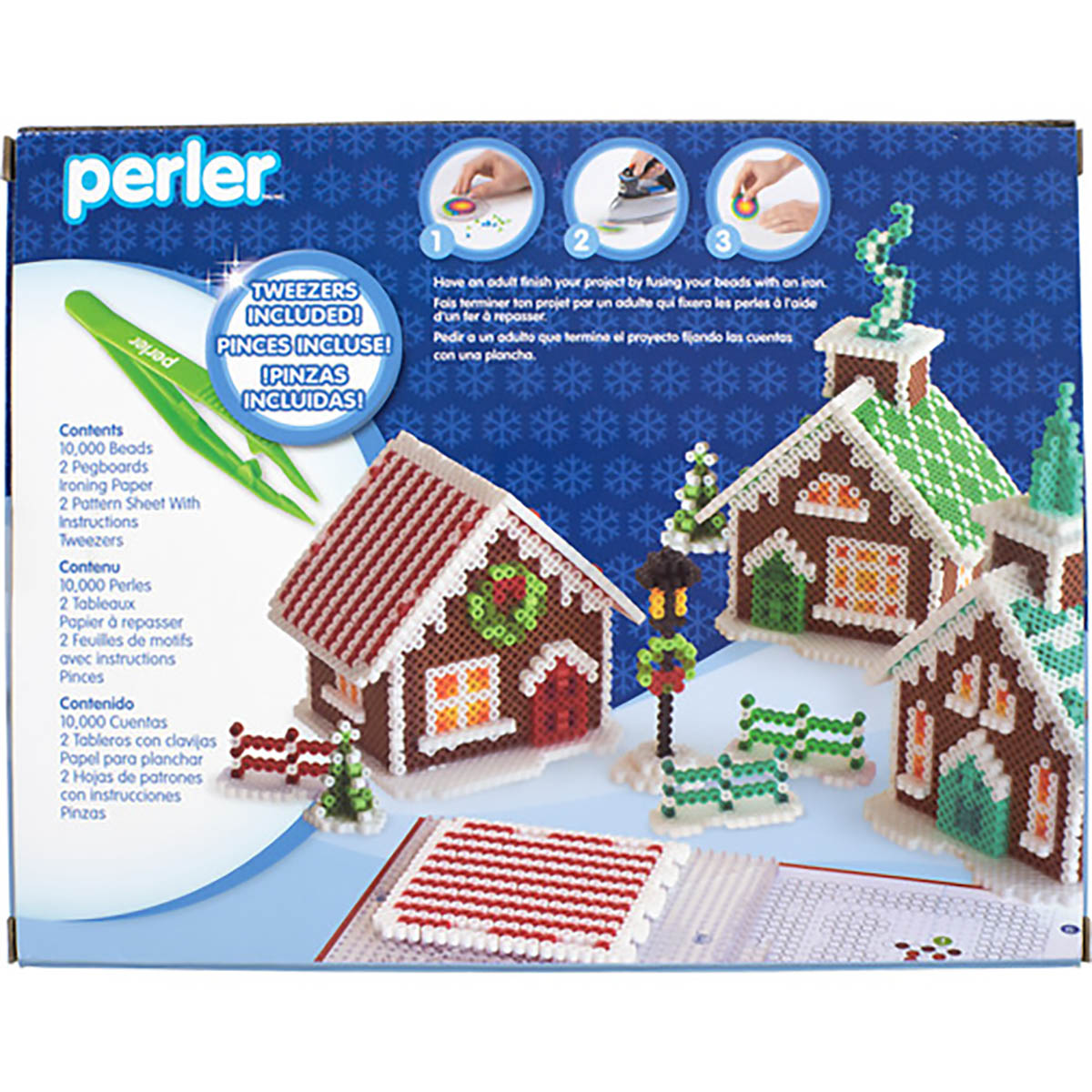 This Holiday Village Kit by Perler makes a great family project for the Christmas season. This 3-dimensional holiday design features festive houses. a church. vintage street lamp. and more. Detailed illustrated instructions provided. Perler beads are great for promoting fine motor skills. color recognition. and imaginative play. For ages 6 and up; some adult assembly required. Contains 10.000 beads. 2 pegboards. 2 pattern sheets with instructions. tweezers. and ironing paper.