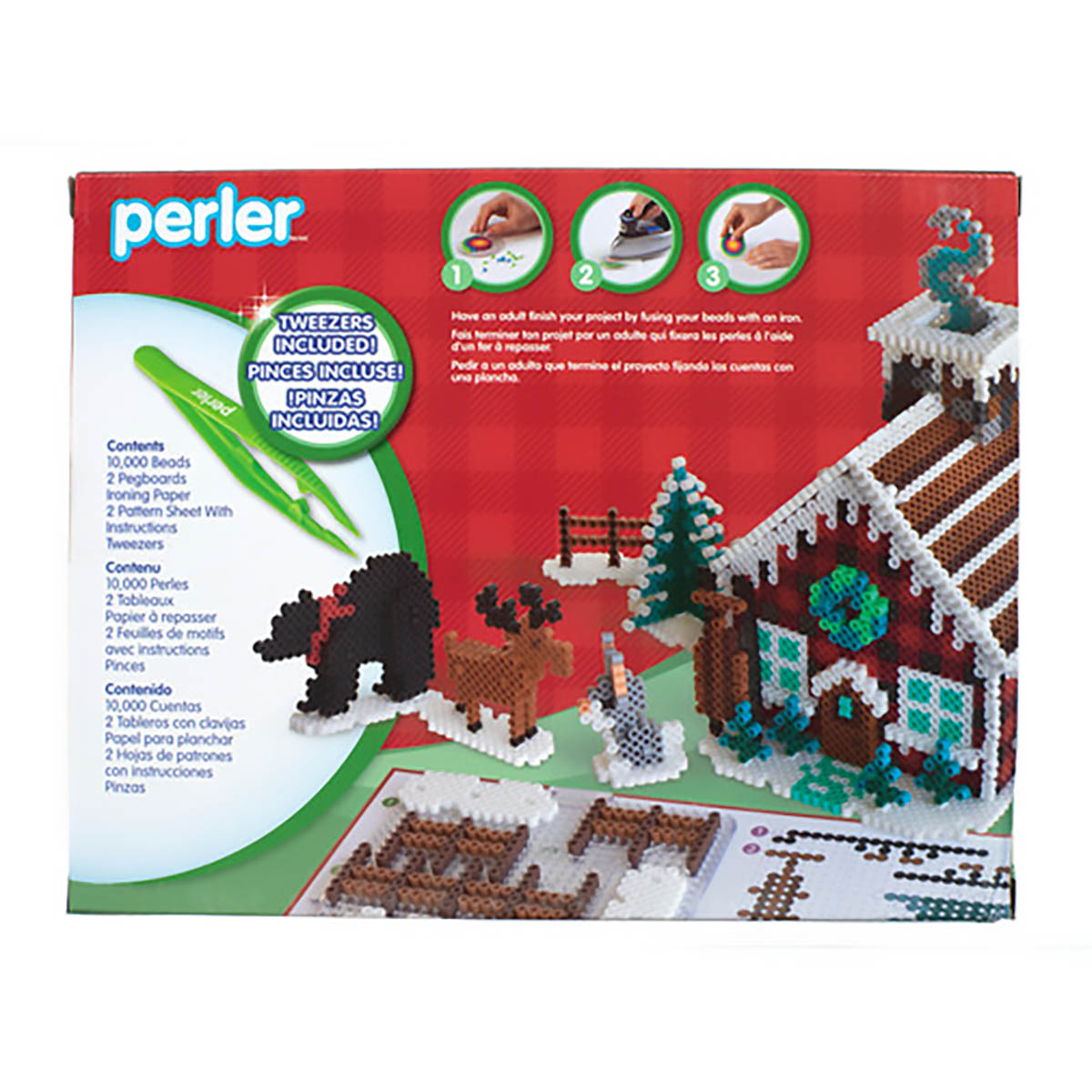 This Winter Lodge Kit by Perler makes a great family project for the Christmas season. This 3-dimensional rustic holiday design features a cozy lodge. moose. bear. and more. Detailed illustrated instructions provided. Perler beads are great for promoting fine motor skills. color recognition. and imaginative play. For ages 6 and up; some adult assembly required. Contains 10.000 beads. 2 pegboards. 2 pattern sheets with instructions. tweezers. and ironing paper.