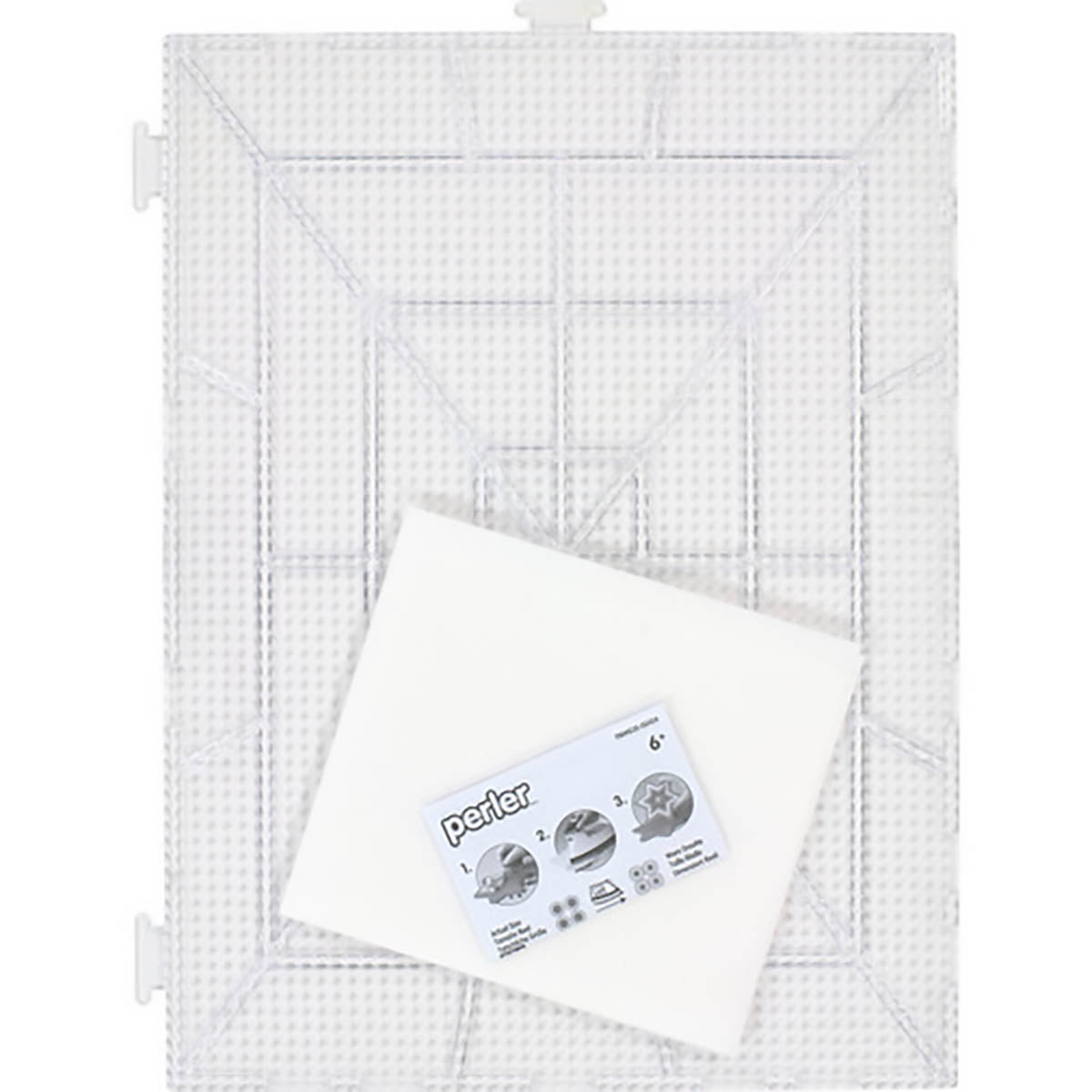 Our Super-Sized Clear pegboard is ideal for creating larger than life Perler projects. Ideal for some of the multi pegboard projects on our website! The advantage with a clear pegboard is that you can lay it right over a pattern for easy placement of beads. The Perler Super-Sized clear pegboard measures 10.5 x 14. Ironing paper and instructions also included. For ages 6 and up.